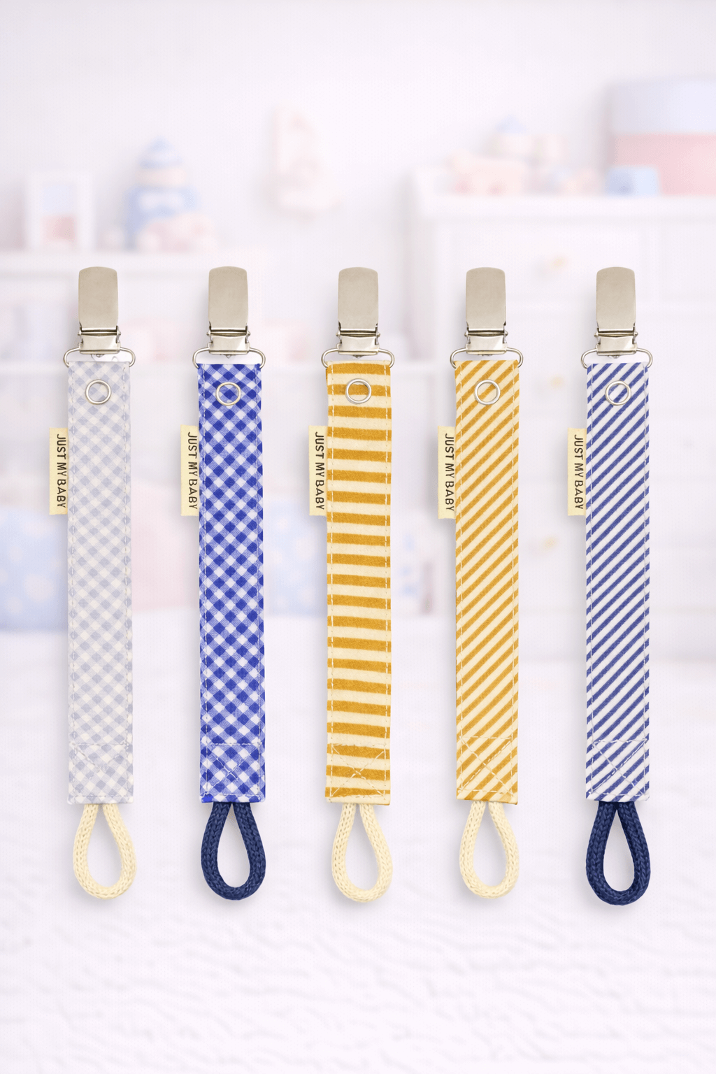 - Bebekler için günlük kullanımda pratiklik ve şıklığı bir arada sunan Kumaş Emzik Askısı 5’li Set, farklı renk ve desen seçenekleriyle hem işlevsel hem de estetik bir kullanım sunar.