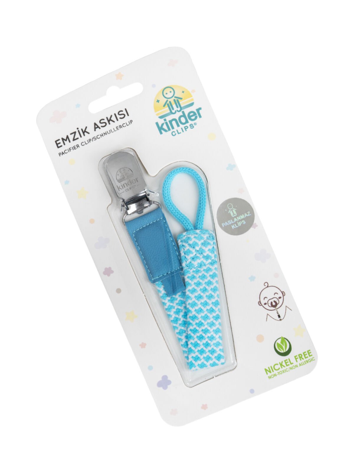 Emzik Askısı – Mavi Pamuk Dokuma | Paslanmaz Çelik Klips