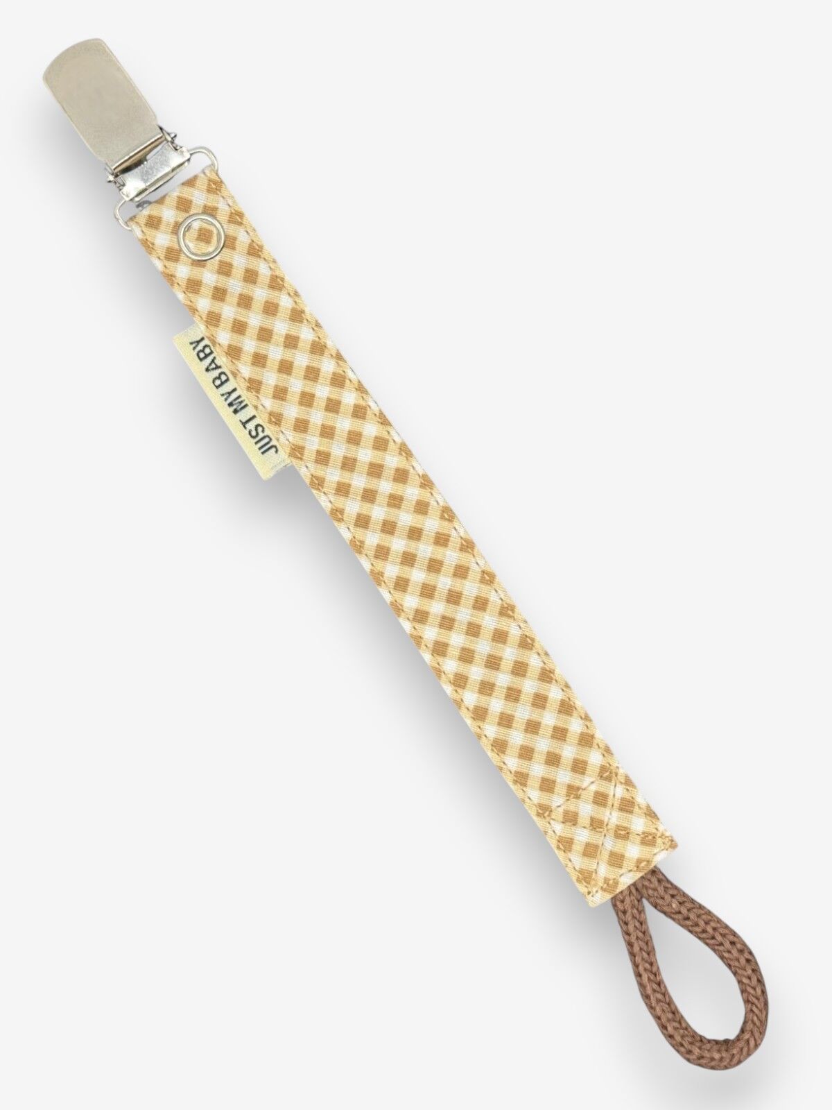 Emzik askısında kullanılan metal klips, plastik destekli yapısı sayesinde giysilere zarar vermez ve sağlam tutuş sağlar.